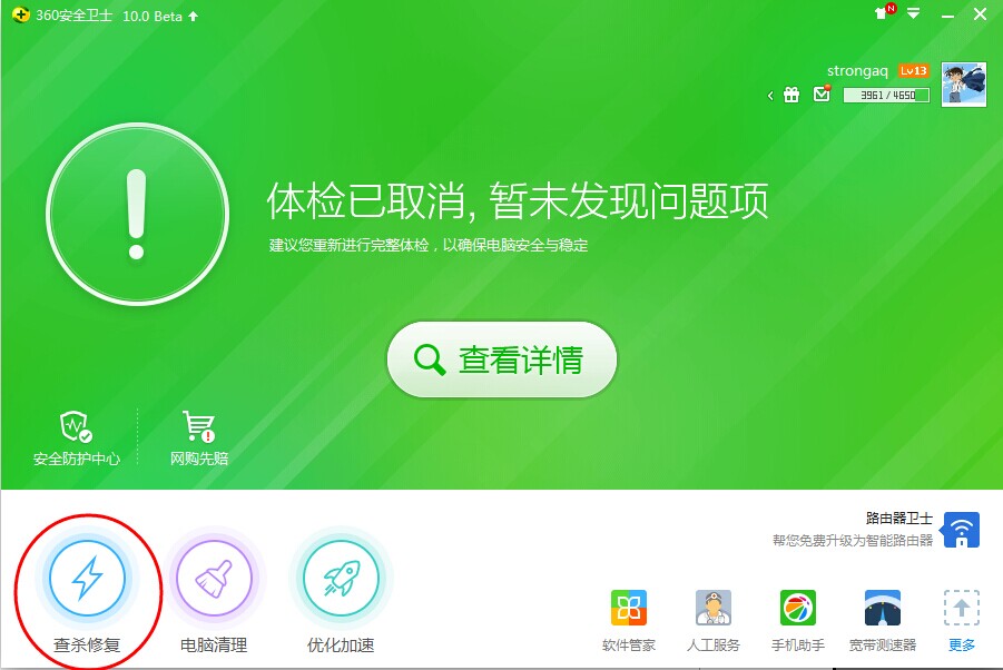 到服務器電腦上找到360安全衛(wèi)士(截圖電腦為最新版360安全衛(wèi)士,版本不同顯示可能有差距)打開,找到查殺修復打開