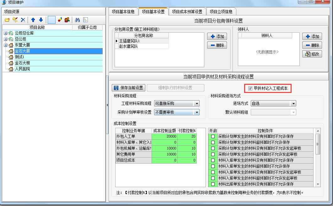 承包合同還可以對(duì)甲供材進(jìn)行控制。如下圖