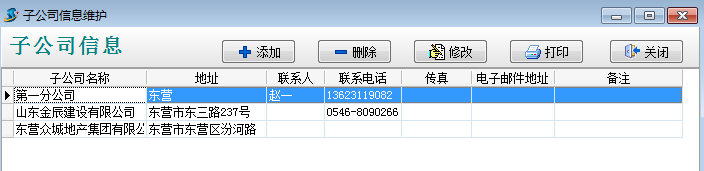 先在【子公司信息維護】中把借資質(zhì)公司維護好,如下圖: