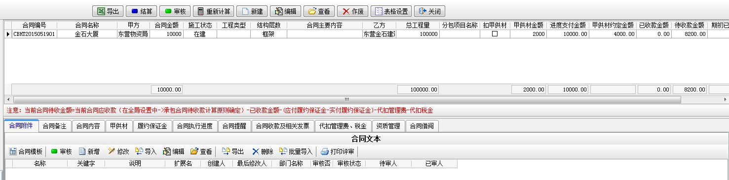 查詢承包合同待收款如下