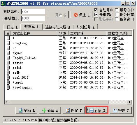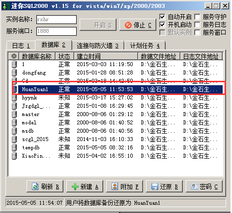 還原完成后可在數(shù)據(jù)庫(kù)中看到還原的數(shù)據(jù)庫(kù),如圖: