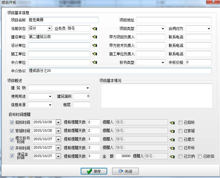 在提醒中心后臺(tái),合同提醒及項(xiàng)目開拓可設(shè)置定時(shí)提醒功能