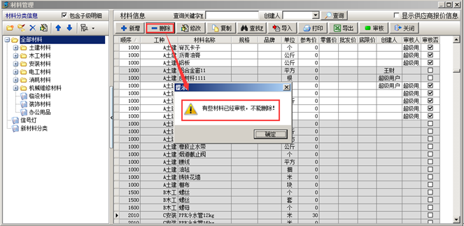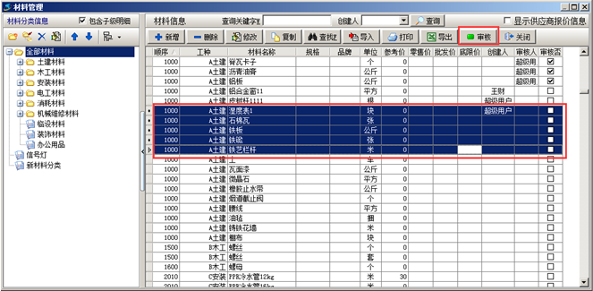 工程項(xiàng)目管理軟件中基礎(chǔ)信息—材料維護(hù)(審核)