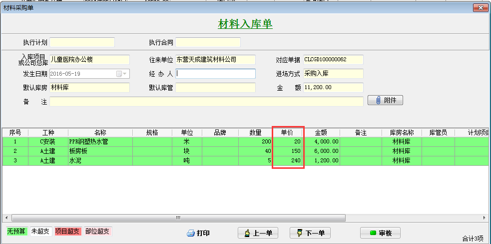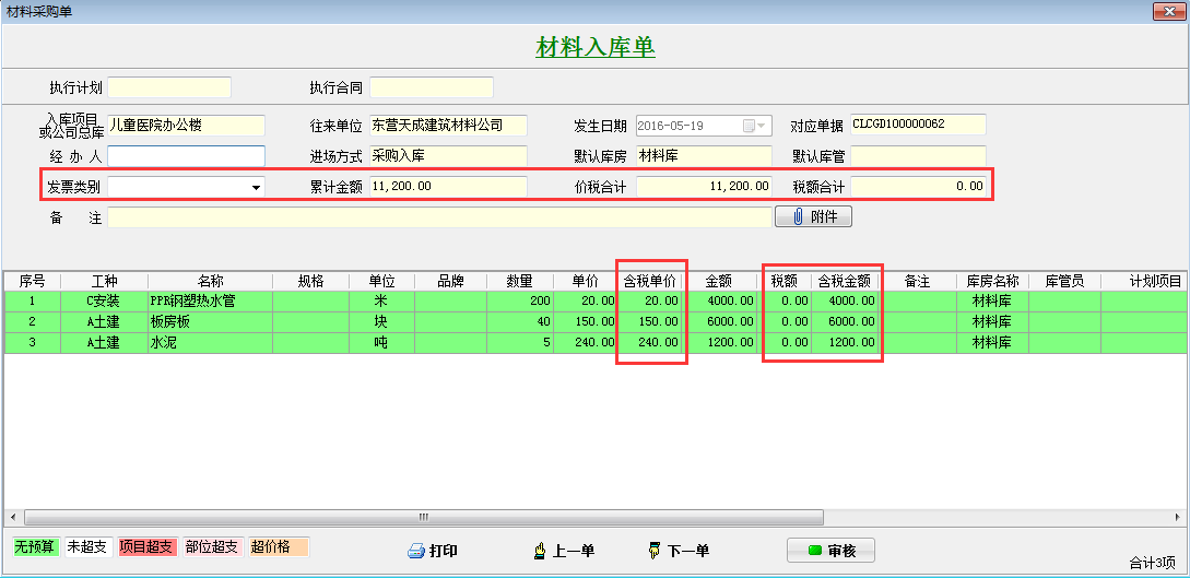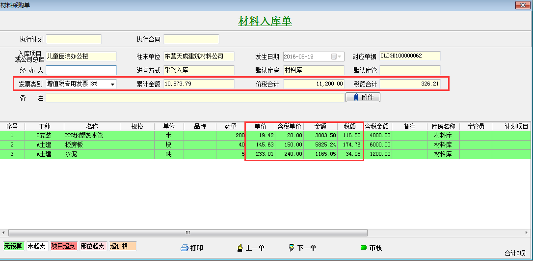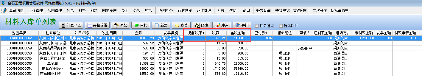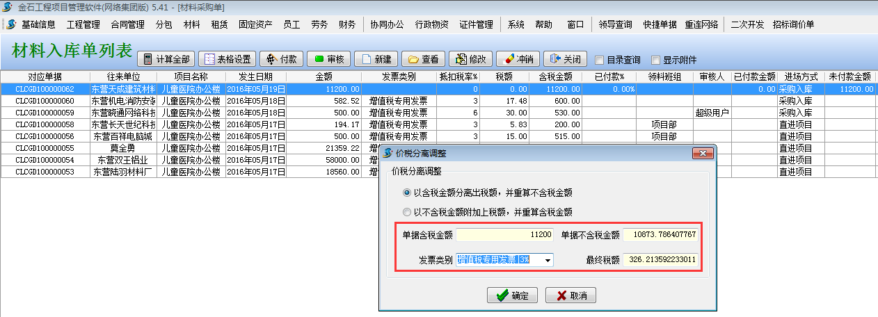 2.營改增.以前版本做的單據(jù)如何實(shí)現(xiàn)價(jià)稅分離調(diào)整?我們以材料入庫單(即材料采購單)為例,進(jìn)行演示:
