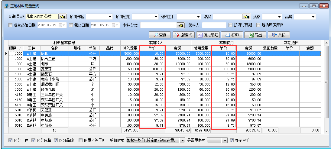 ⑴.庫存查詢和用量查詢以不含稅單價(jià)和金額統(tǒng)計(jì)。如下圖: