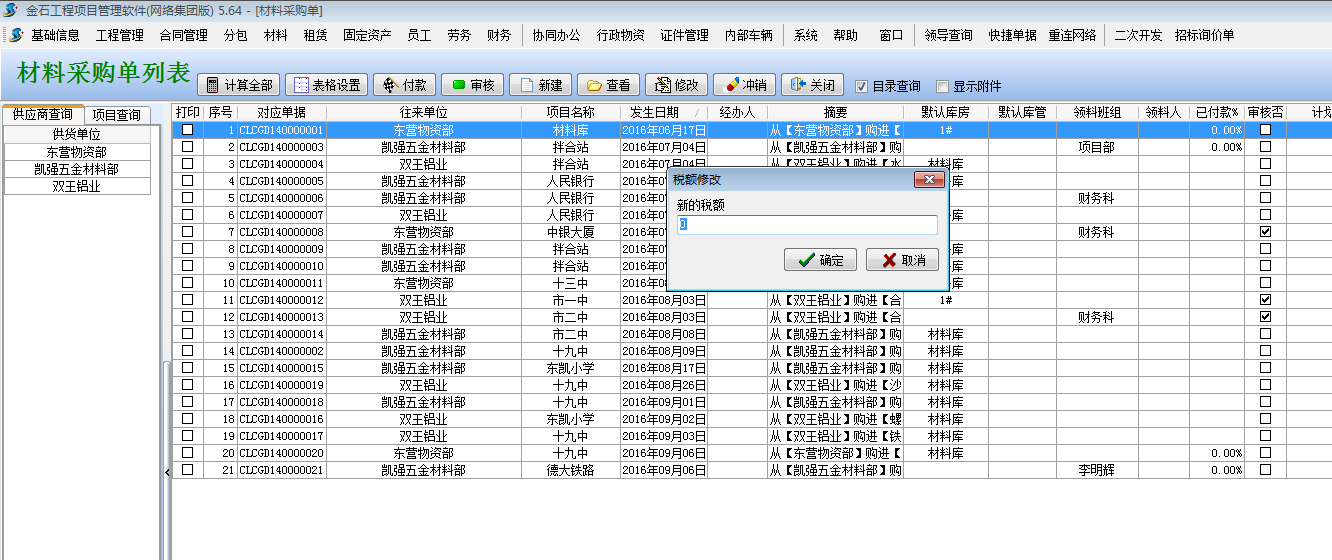 工程項(xiàng)目管理系統(tǒng)為適應(yīng)“營改增”政策升級(jí)到5.4版本以后,如下圖: