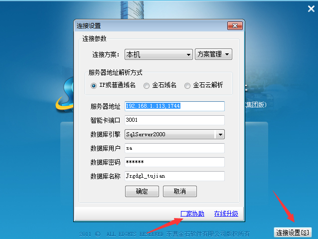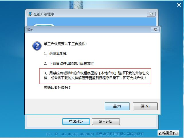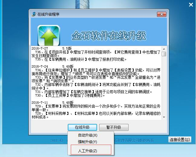雙擊打開金石軟件圖標→連接設(shè)置→在線升級→人工升級