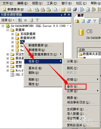 3、雙擊數(shù)據(jù)庫,右擊數(shù)據(jù)庫名,然后鼠標移動到任務,點擊備份