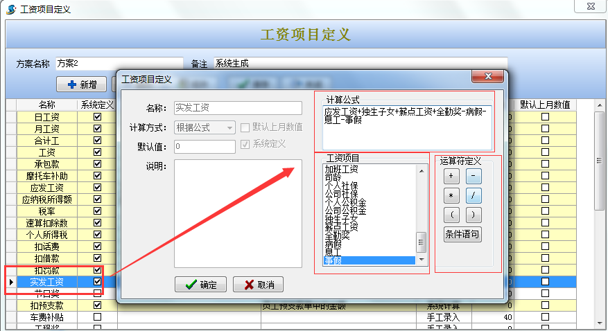 四、 工資項(xiàng)目定義