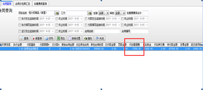 ④“分包合同”查詢掛靠單位資金剩余應(yīng)返還工程款金額等(下圖中代扣的管理費(fèi)17500元就是我們公司的盈利)