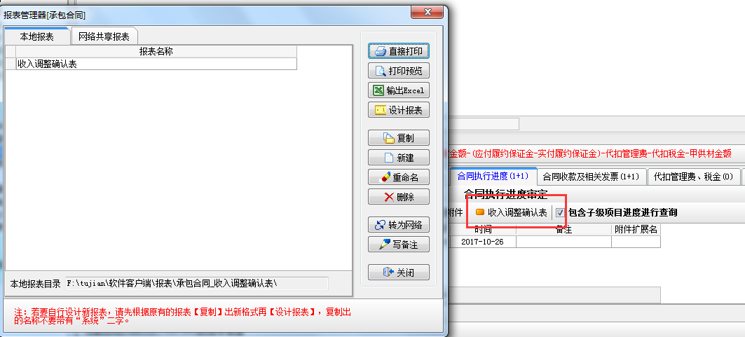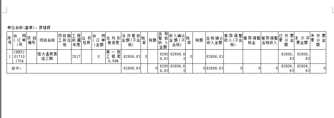 六、工程項(xiàng)目管理軟件打印收入調(diào)整確認(rèn)表