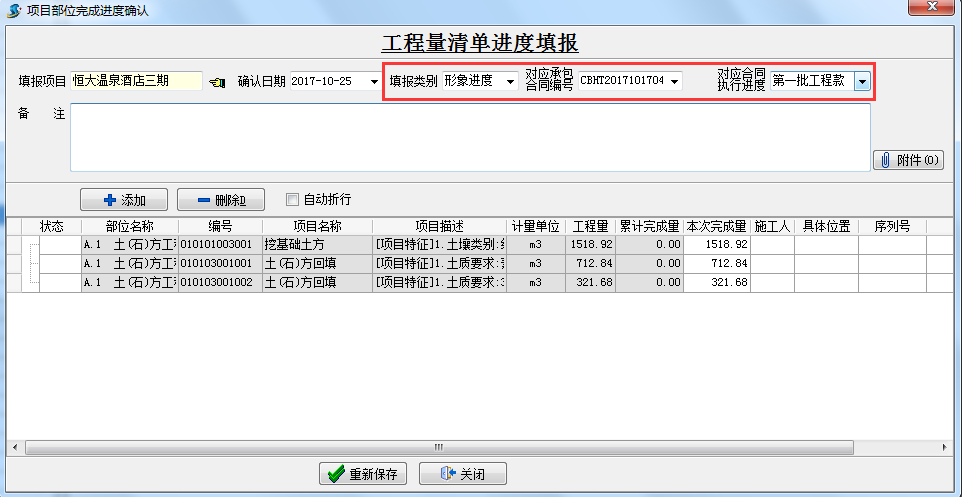 根據(jù)工程量清單填寫形象進(jìn)度(形象進(jìn)度為與甲方結(jié)算的依據(jù)),對(duì)應(yīng)“承包合同”和“合同執(zhí)行進(jìn)度”