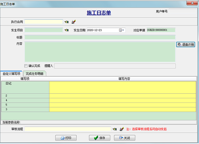 施工日志是施工方用于記錄工程項目真實情況,反饋一線信息的重要資料,也是施工管理軟件中進(jìn)度來源,金石軟件的施工日志模塊為每個任務(wù)提供明細(xì)反饋,并根據(jù)工地的實際情況,設(shè)計了語音識別功能,用戶可以通過語音簡述項目情況,語音自動識別為文字,減輕了工作量和工作難度。