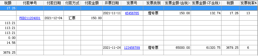 6、發(fā)票類(lèi)別:根據(jù)發(fā)票單中‘發(fā)票類(lèi)別’拆分:類(lèi)型為”增值稅專(zhuān)用發(fā)票“顯示為”增專(zhuān)票“;.非增值稅專(zhuān)用發(fā)票的發(fā)票類(lèi)型,按單據(jù)原發(fā)票類(lèi)型顯示;其中付款單和驗(yàn)收單顯示空白。