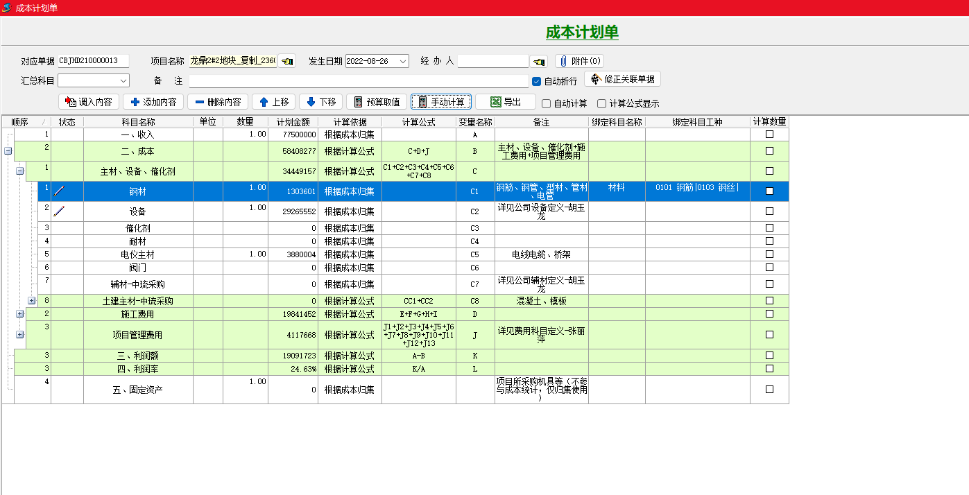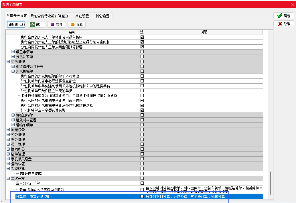 使用該功能需開啟系統(tǒng)全局設(shè)置“預(yù)算啟用成本計劃控制”
