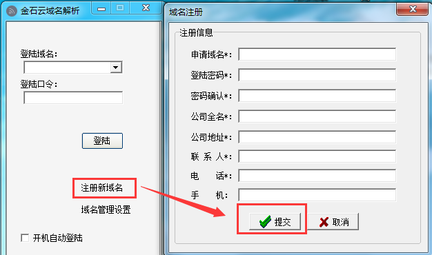 安裝完成后,在桌面打開快捷方式,在彈出的對話框中注冊新域名。然后使用新域名登陸。