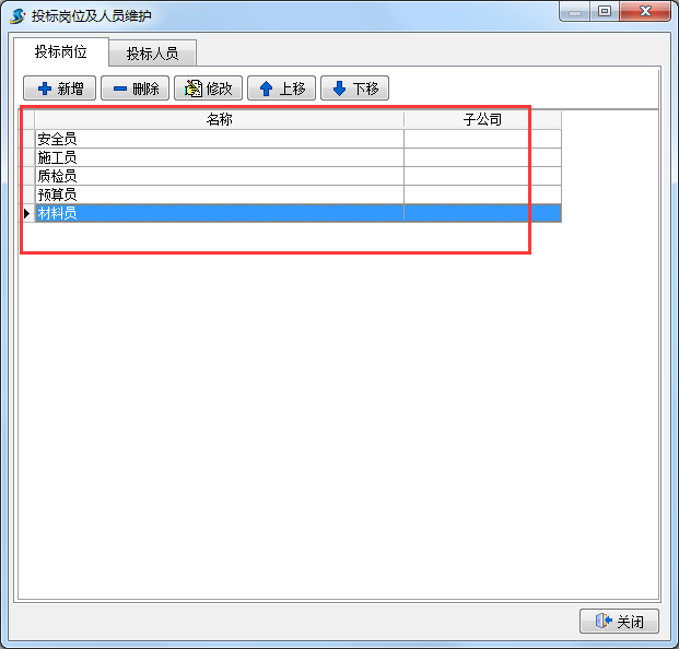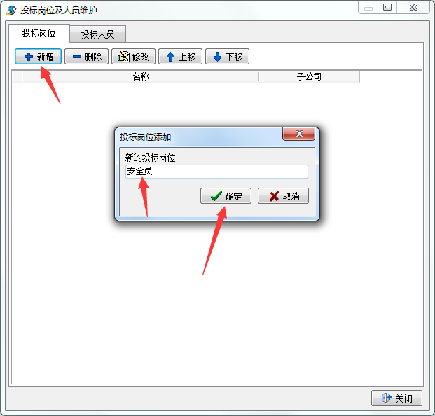 在新打開的維護窗口中,點擊新增,依次添加需要的投標崗位,如下圖: