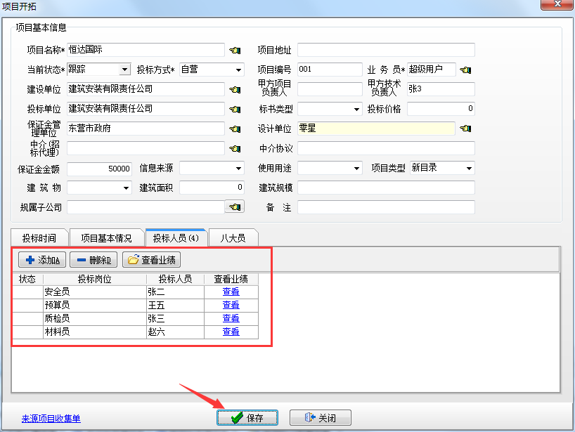 添加完投標人員后,點擊保存該項目新建完成,如下圖: