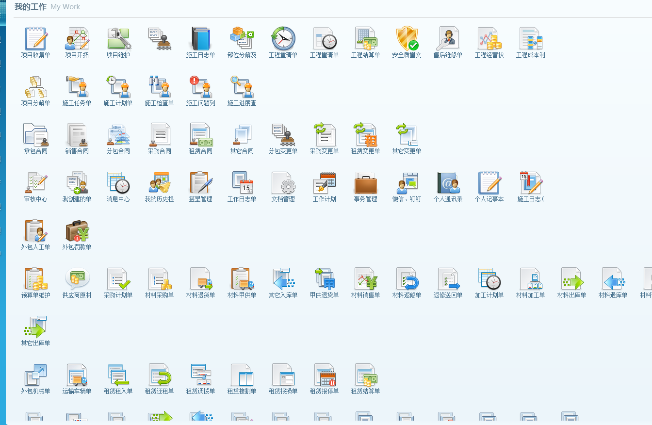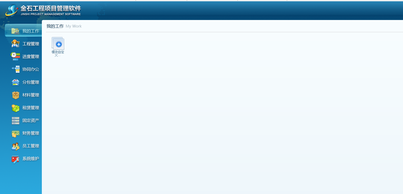 1、在版本6.18中,在導(dǎo)航模塊中新加了【我的工作】模塊,此模塊主要用于普通用戶的常用單據(jù)和查詢按鈕的自定義設(shè)置。初始模式如下圖