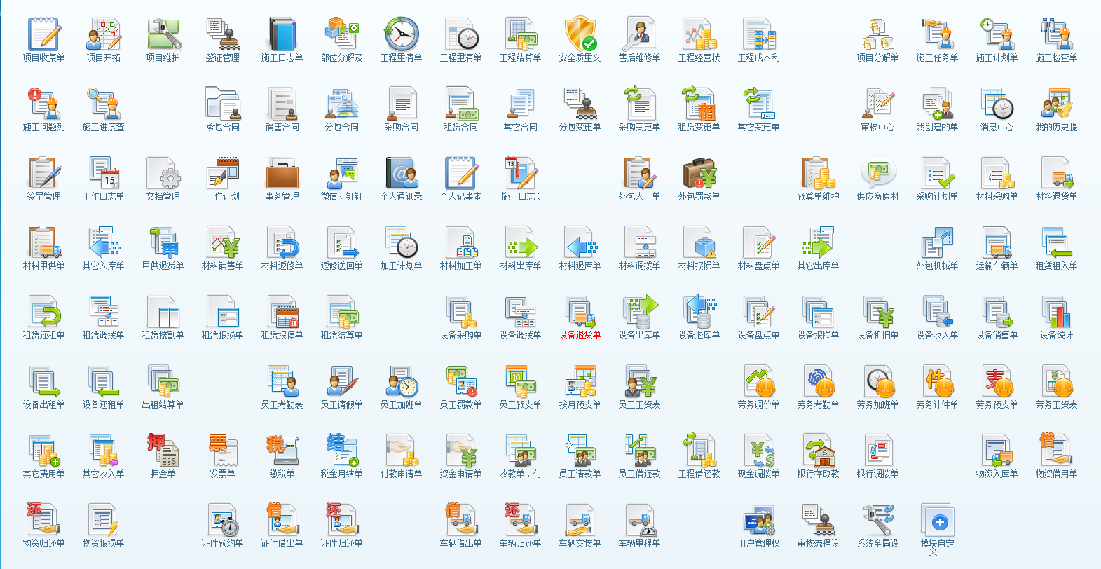 點(diǎn)擊模塊自定義可以添加單據(jù)類模塊和查詢類模塊。單據(jù)類模塊可以設(shè)置正常顯示、間隔顯示和換行顯示。同時(shí)還可以設(shè)置圖標(biāo)左右間距。具體操作如下