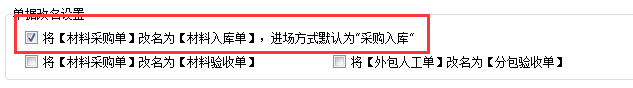 2、單據改名設置,這里可以將【材料采購單】改為【材料入庫單】,或者改為【材料驗收單】