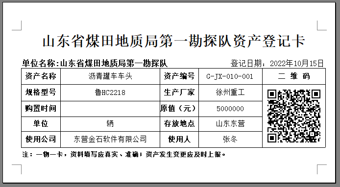 金石工程管理軟件新增固定資產(chǎn)生成二維碼功能