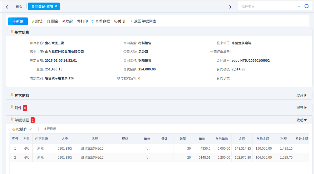 針對(duì)系統(tǒng)集成、市政路橋等行業(yè)有銷售業(yè)務(wù)可以填寫銷售合同,根據(jù)銷售合同生成材料銷售出庫(kù)單、材料銷售結(jié)算單。